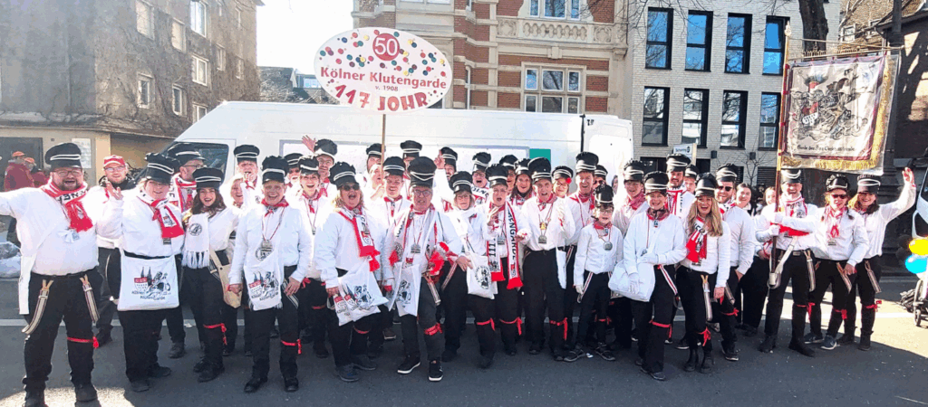 Die Kölner Klutengarde gibt es seit 1908 – verwurzelt rund um St. Ursula, offen für alle, die den bezahlbaren und familiären Karneval lieben. Wir feiern gemeinsam im Veedel und laufen bei den Schull- un Veedelzöch mit. Als Traditionsgesellschaft (seit 2022) halten wir kölsches Brauchtum nahbar und unkompliziert.